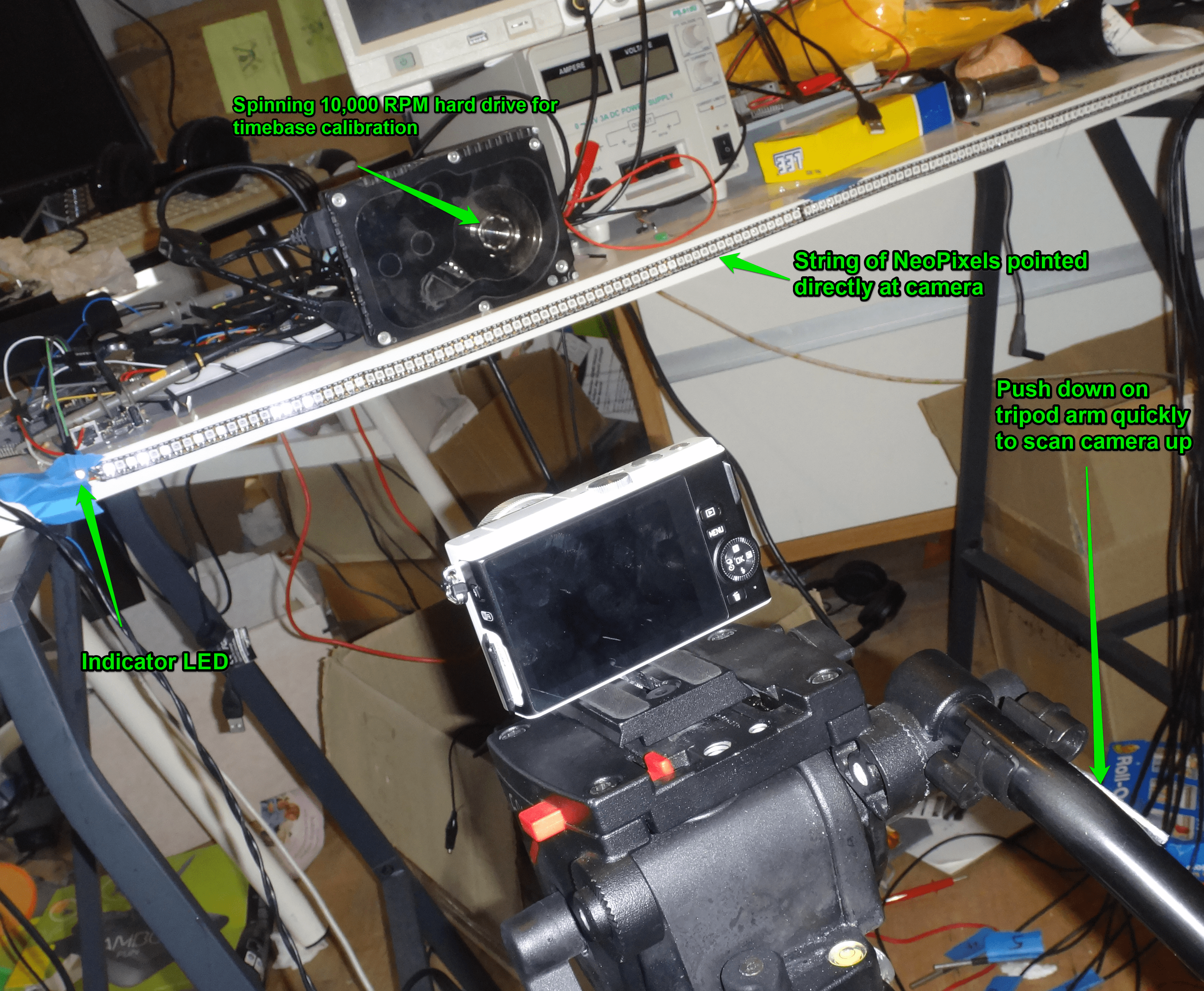 While this is really cool and seems to confirm that the pixel jitter really exists in the real world, we are sampling at a rate very close to the rate of the thing we are trying to measure which could mislead us.  If only we could get more temporal resolution. How can we see down to microseconds without spending $20k on a fancy camera?