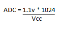 Vcc = (1.1v * 1024) / ADC