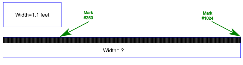 If 1 mark is 0.0044 feet, and we know the long stick is 1024 marks long, then we know that the long stick is 1024 marks * 0.0044 feet per mark = 4.5056 feet. Our long stick is ~4.5 feet long!