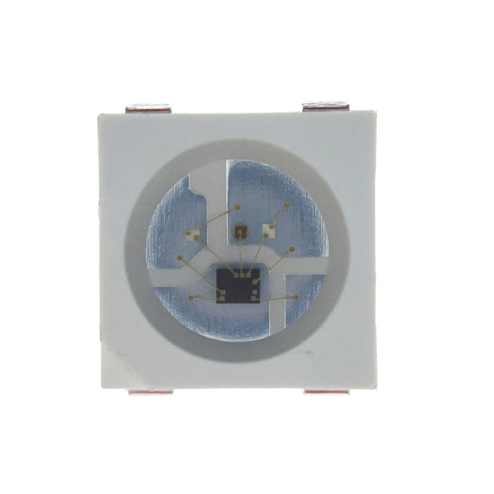 I should point out that Worldsemi’s naming convention is stupid here because the WS2811 is the IC name only, not the integrated diode package. If you look up the datasheet it’s only an 8 pin SOIC. The WS2812(S) 5050 LED package is the integrated package with R,G,B diodes plus the WS2811 IC embedded in it. WS2812B is the new revision where the IC is different and it reduces the number of pads down to 4.
